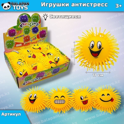 Анти стресс мяч Смайлик пушистик с веревкой